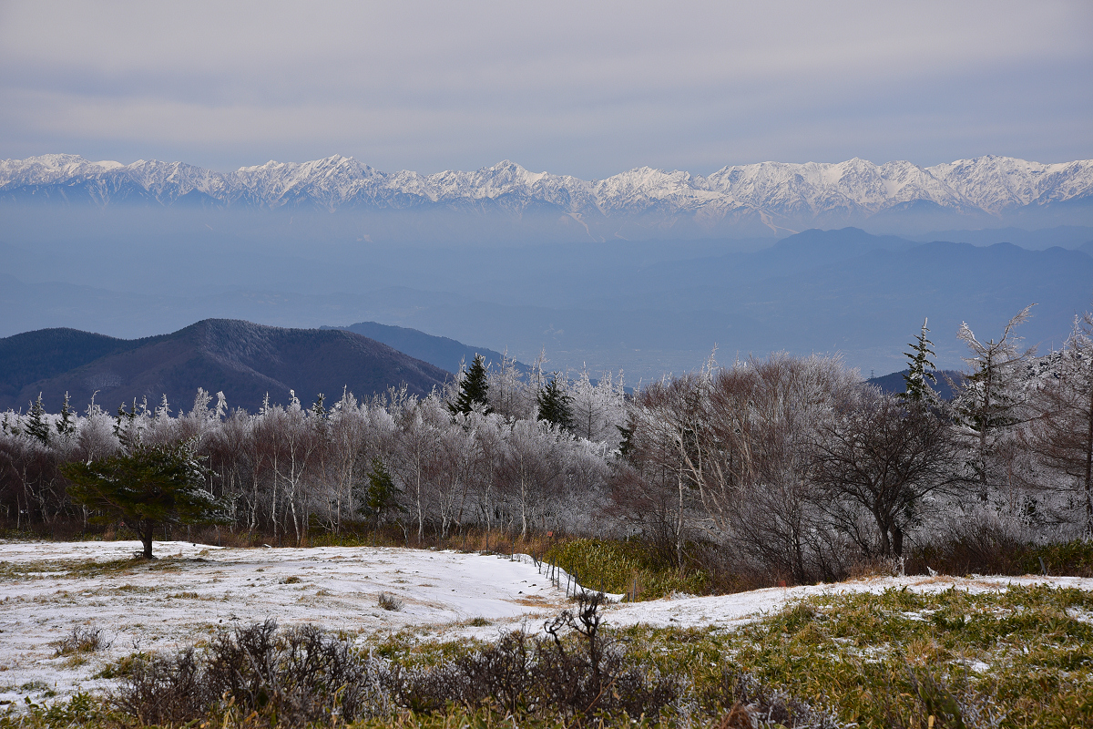 北アルプスは真っ白です。