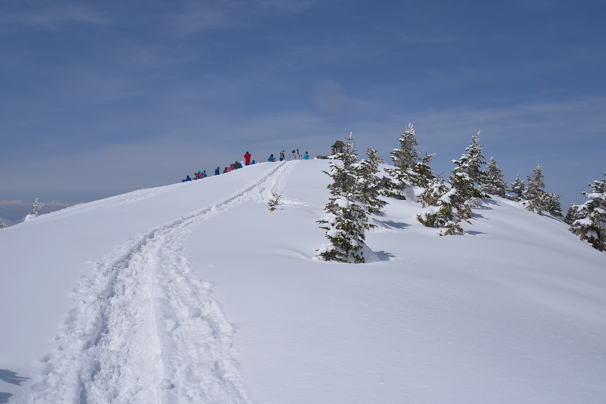 ゲレンデTOP(8:52) 〜 根子岳(10:32) 〜 2000m地点(11:02) 〜 根子岳(12:00) 〜 駐車場(13:20)