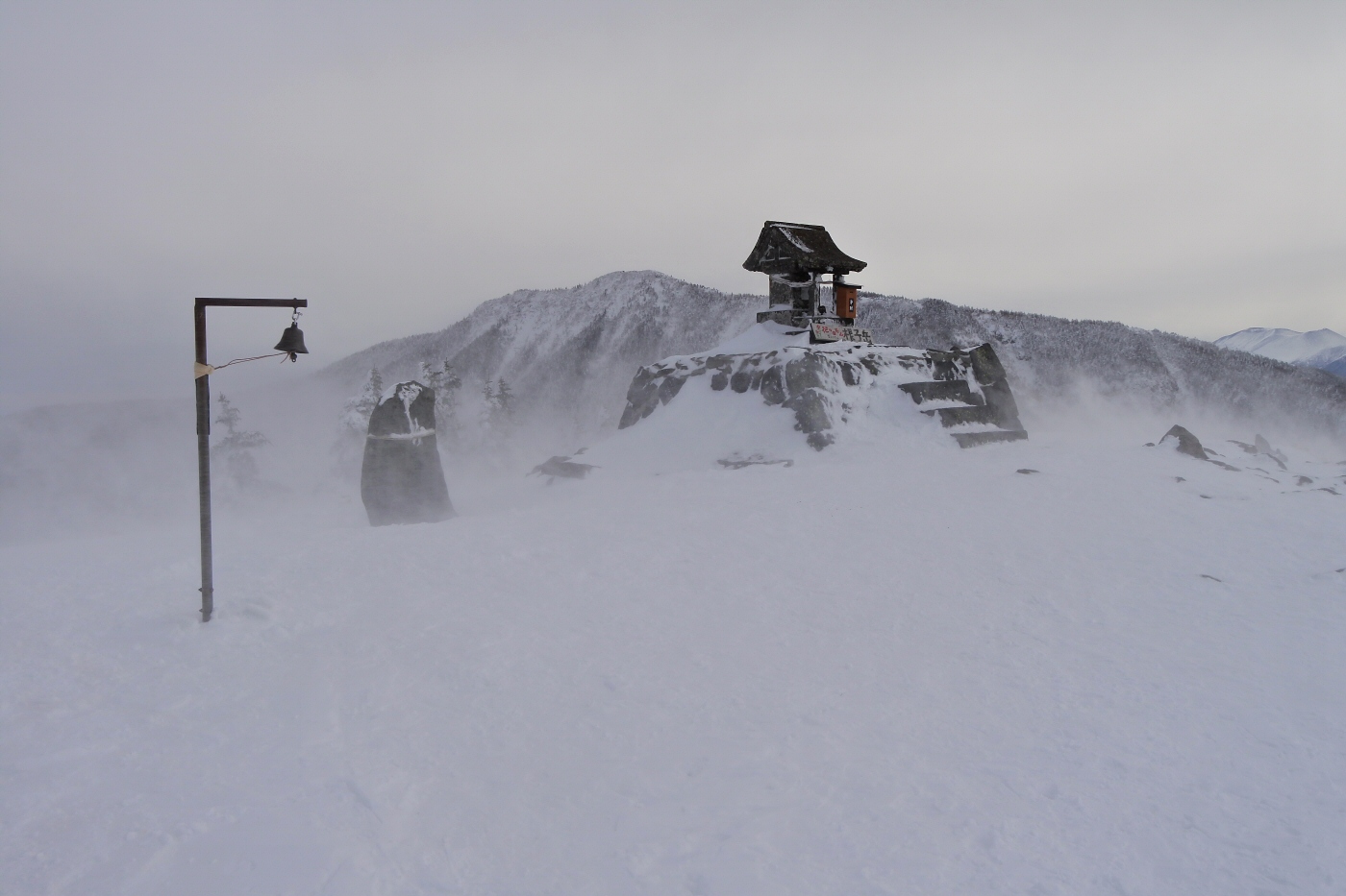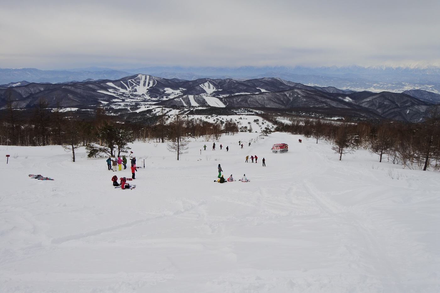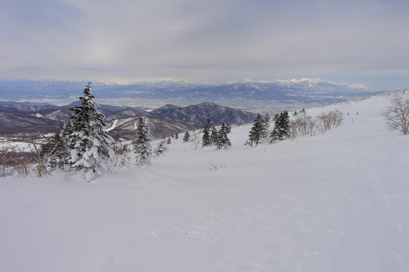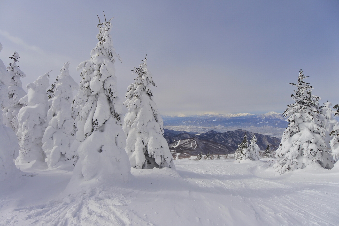 家族は奥ダボスで滑り、自分は根子岳へ。山頂付近は猛烈な風で一目散に逃げ帰ってきました。