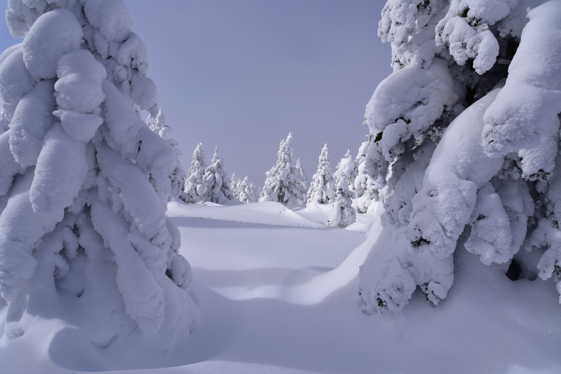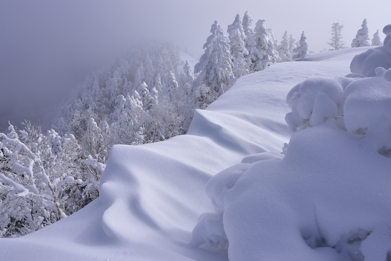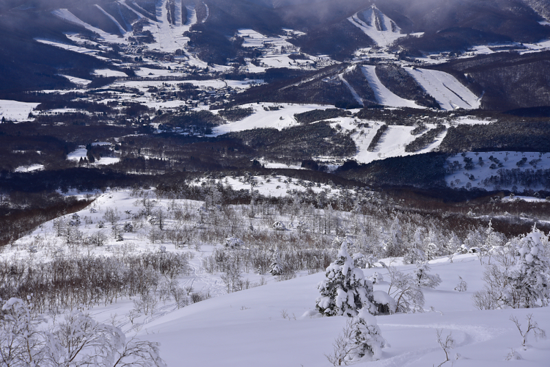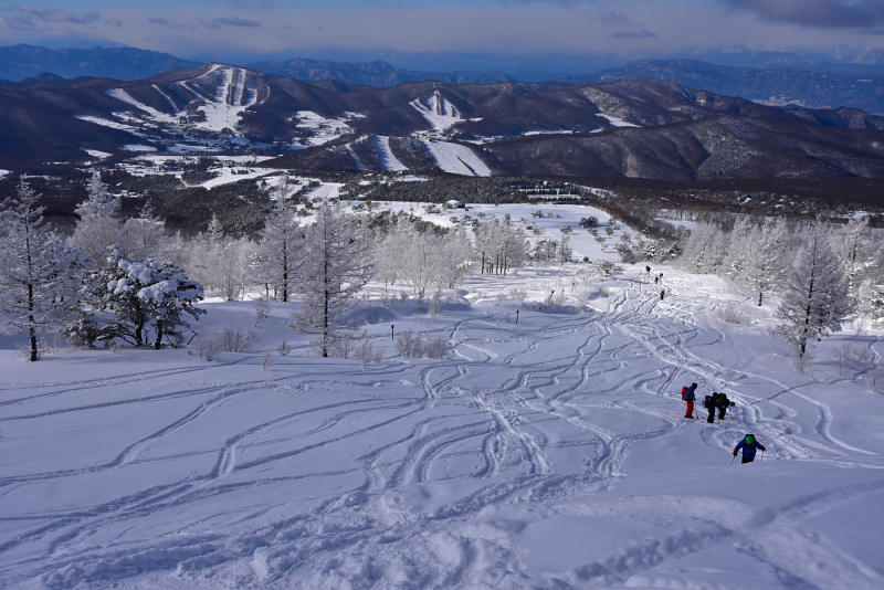 今日もサラサラの雪質で、根子岳では有り得ないほどの良好な状態が保たれている。