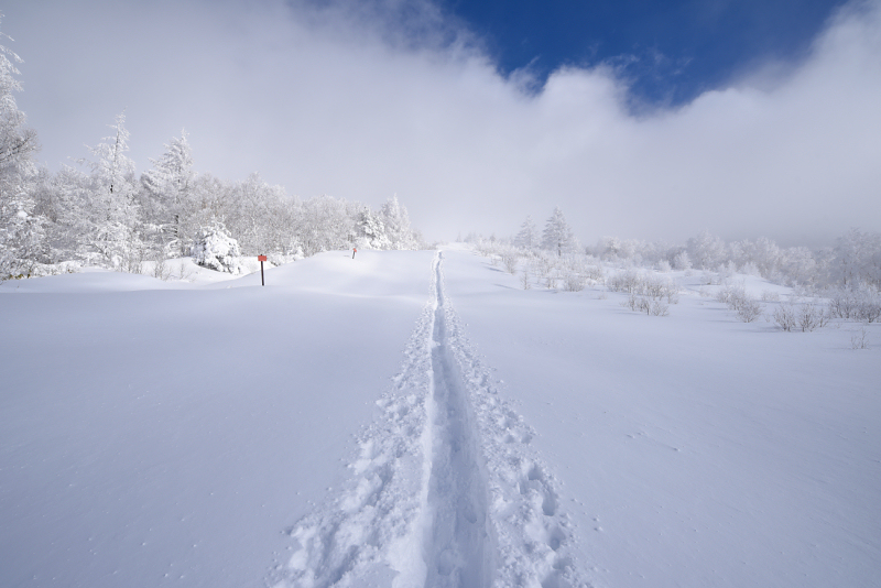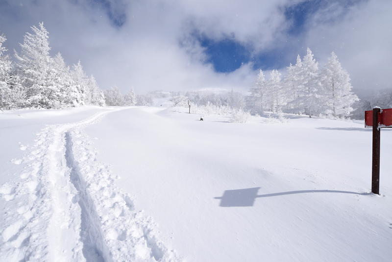 昨日だけで50cm以上積もったようです。ラッセルしたくれた人に感謝しながら進みます。