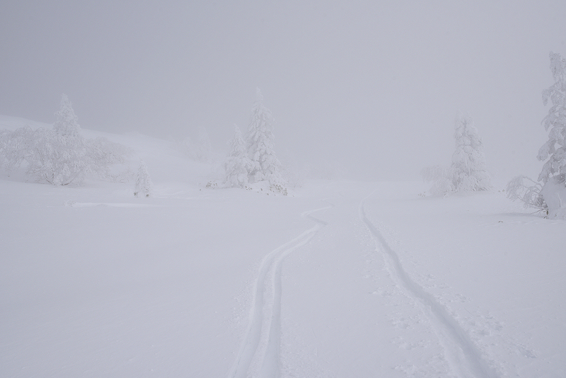 大晦日の大雪で新雪が50cm以上あり、どこでも滑れるような状態となりました。帰りはホワイトアウトに悩まされ、久しぶりにスピード感覚が無くなるようなスキーになりました。 |