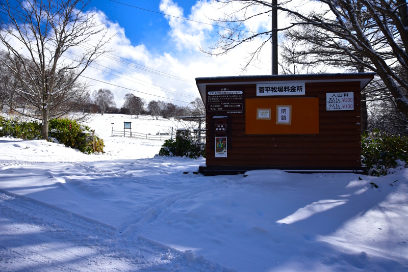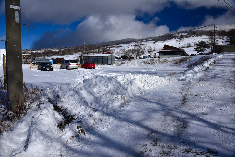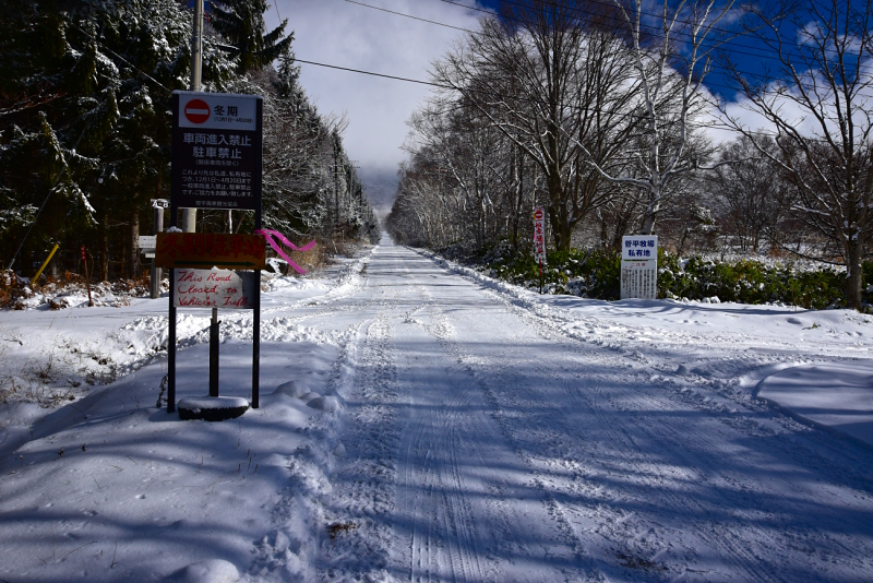 ここから先は進入禁止。冬期の駐車場に停めてから出発です。