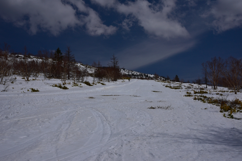 北側の斜面には、まだまだ多くの雪がありますが、そろそろ根子岳のスキーシーズンは終了のようです。