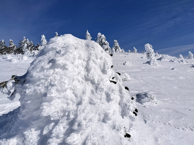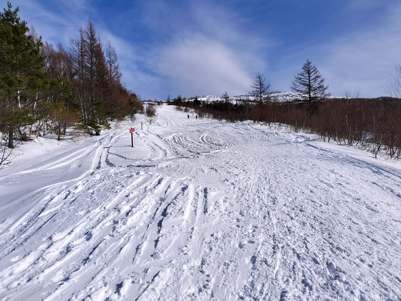 近年、雪不足で雪上車が入らなくなり、コース上の木も育ってきました。
