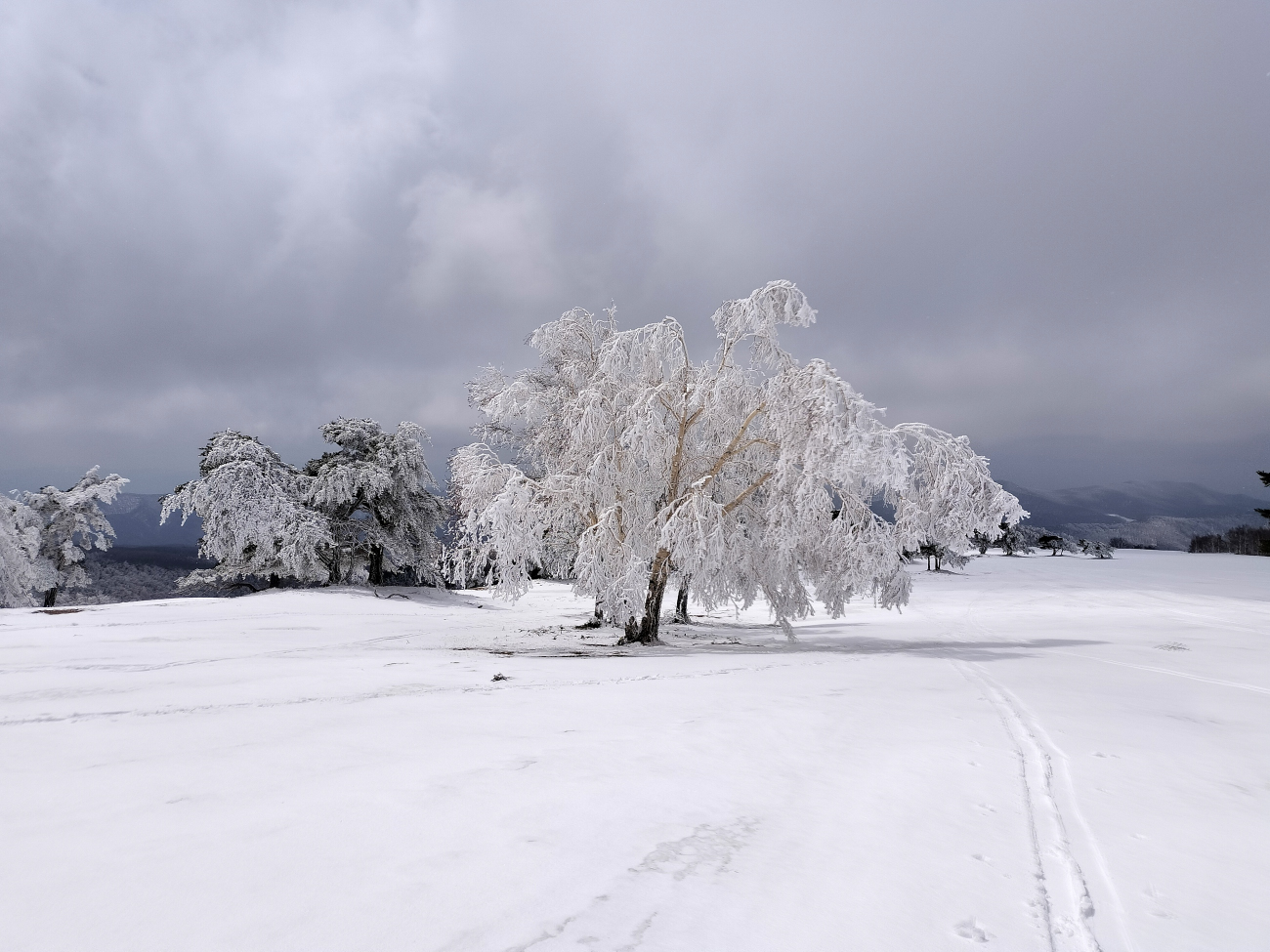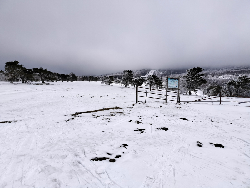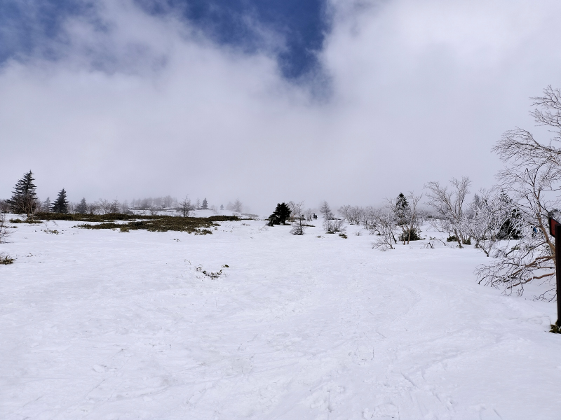 時々青空も見えますが、全体的に雲は多め。雪の様態はイマイチ。