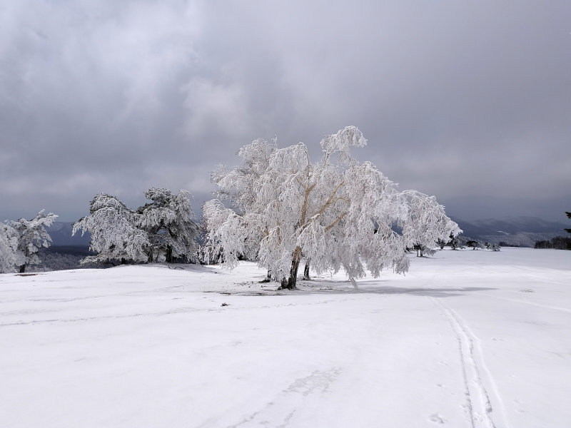 四阿山方面からやってきた登山者が雪玉を作って下山していきました。