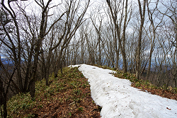 雪に押しつぶされた笹が広がっていました。この時期の薮は無いに等しいです。