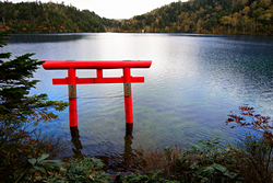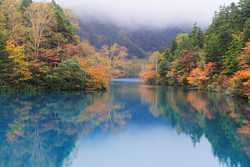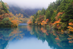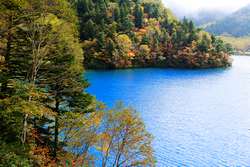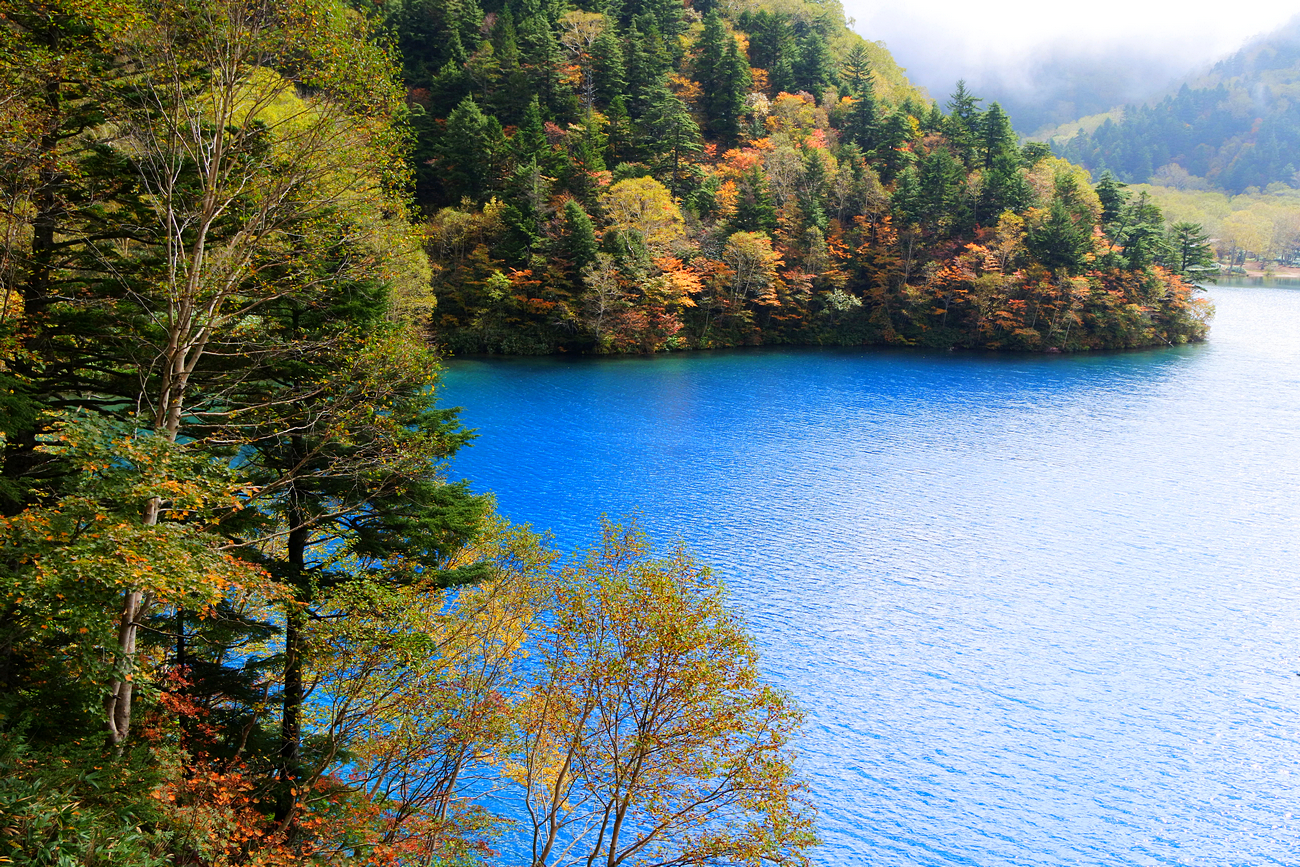 志賀高原に紅葉狩りへ。まだ始まったばかりで限定的でしたが、大沼池のコバルトブルーが紅葉を鮮やかにしてました。