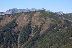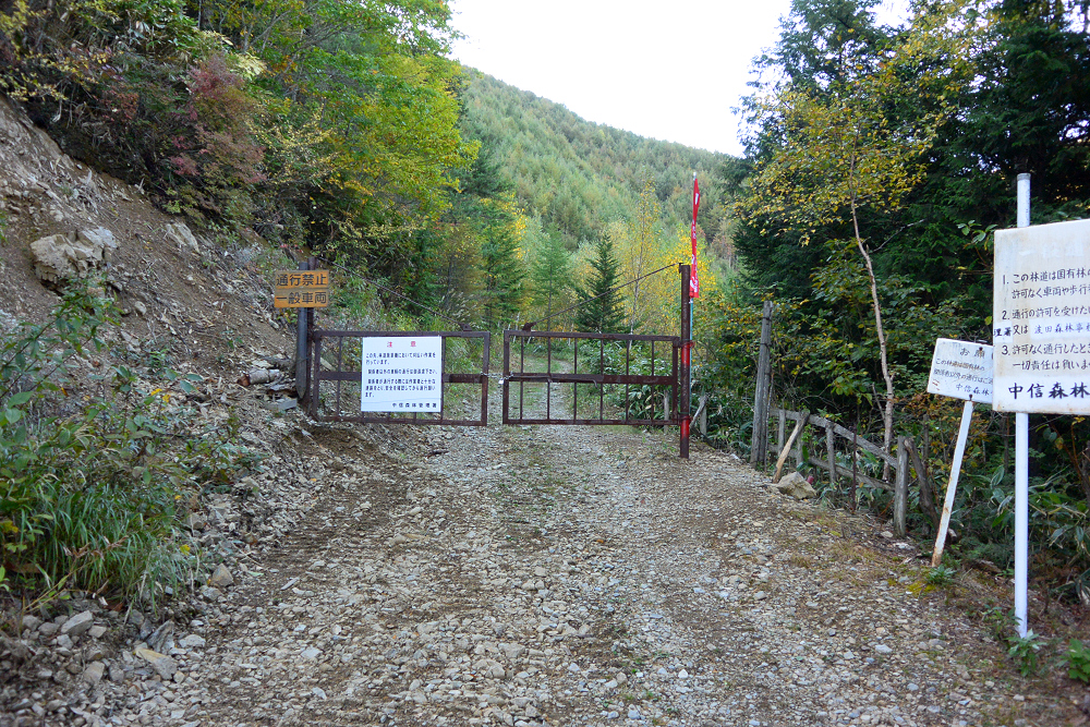 林道ゲート(7:23)〜 登山口(8:00)〜 鍋冠山(9:16)〜 大滝山 北峰(11:34)〜 鍋冠山(13:32)〜 登山口(14:23)