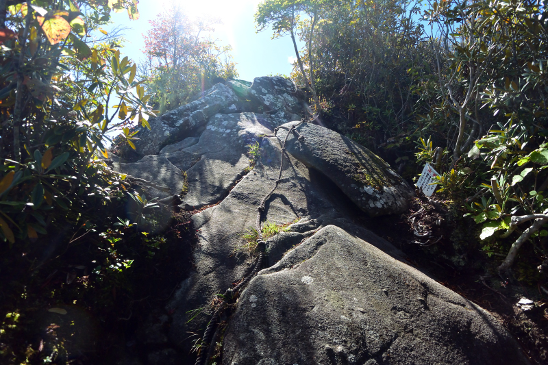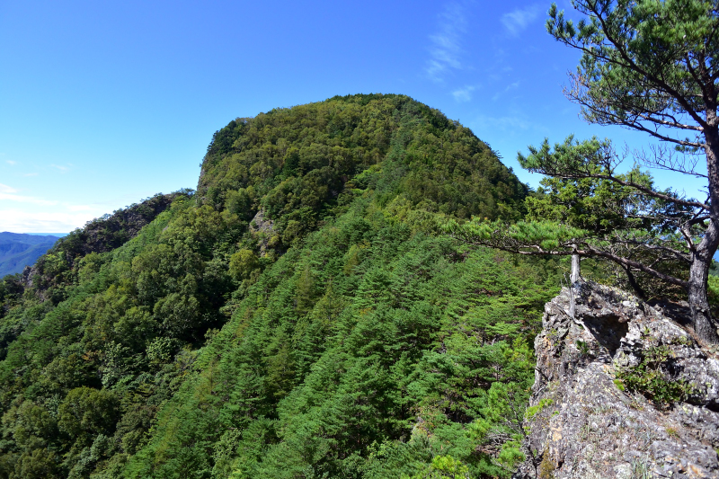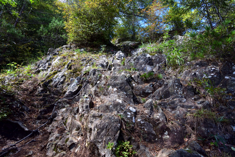 いくつかの岩場を越えると天狗山が見えるようになります。