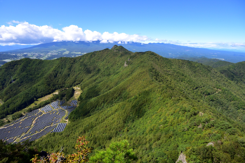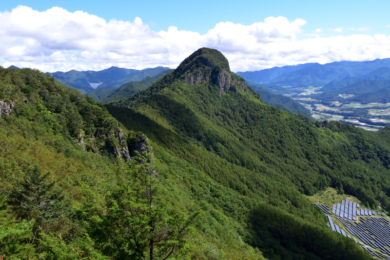 男山が見えました。山の斜面にはたくさんのソーラーパネルが見えます。