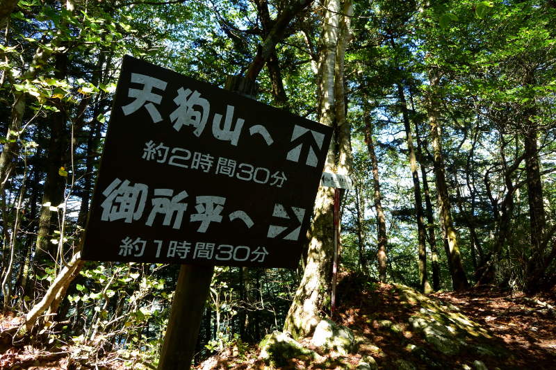 ここの稜線の標識は、距離も時間もおかしいような気がします。
