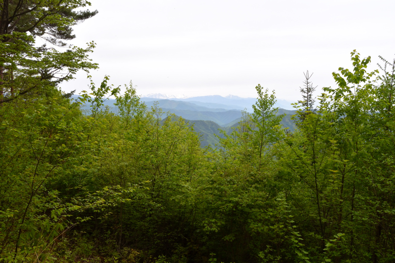 近年、近江山はあまり登られていないようで登山道も荒れていたが、山頂付近から槍や穂高も見えて他の山々も偵察出来て良かった。 |