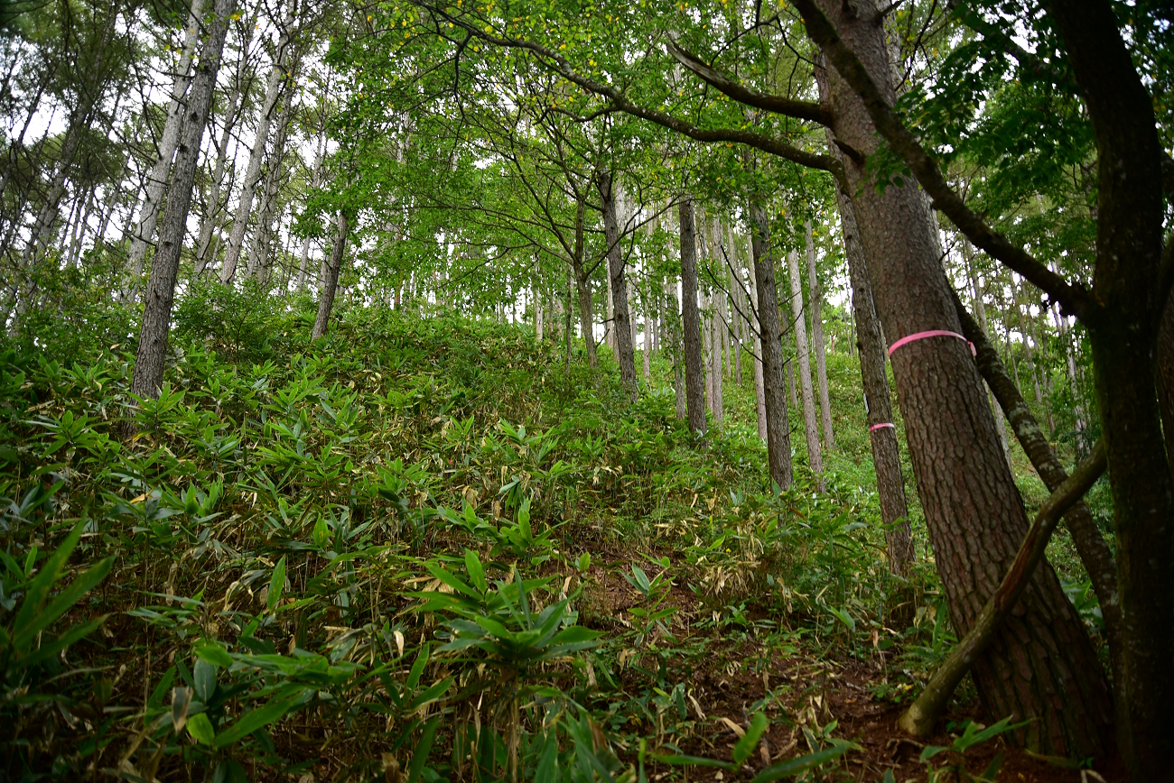 高井城山ツツジ公園の駐車場に車を停めて紫子萩山までピストンする。山頂付近は藪が激しく展望も無し。10年ぐらい前の記録を見ると見晴らしも良さそうだったが、笹の勢いは凄いと感じる。 |