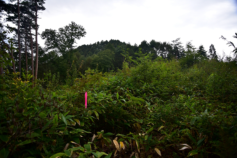 藪漕ぎしながら進みます。正面に見えるのが紫子萩山のようです。