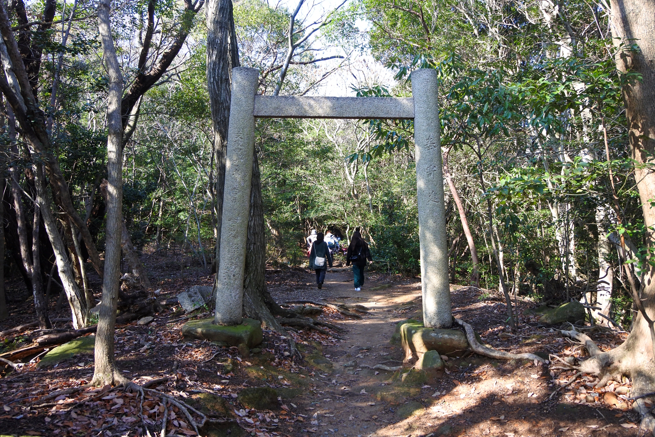 見民家の脇の駐車場に車を停めて出発。壊れた鳥居があった。