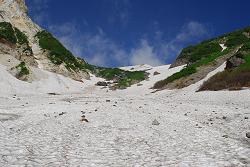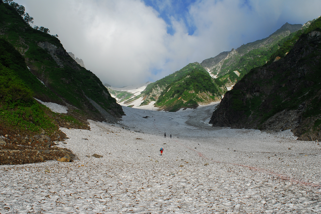 猿倉(4:38)〜 白馬尻(5:33)〜 小雪渓(8:09)〜 頂上宿舎(9:27)〜 白馬尻(13:46)〜 猿倉(14:27)