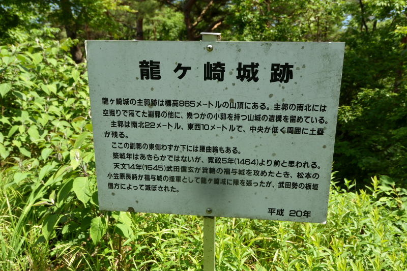 穴倉山の帰りに龍ヶ崎城跡に登る。交通の要のような場所にあったので、辰野町や伊那谷の眺めが良かった。 |