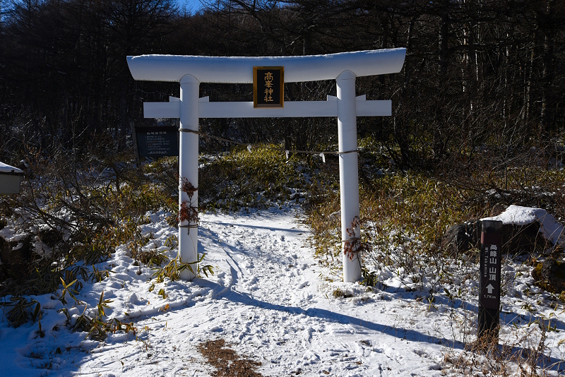 登山口の鳥居。足跡から結構な人達が登っているようです。