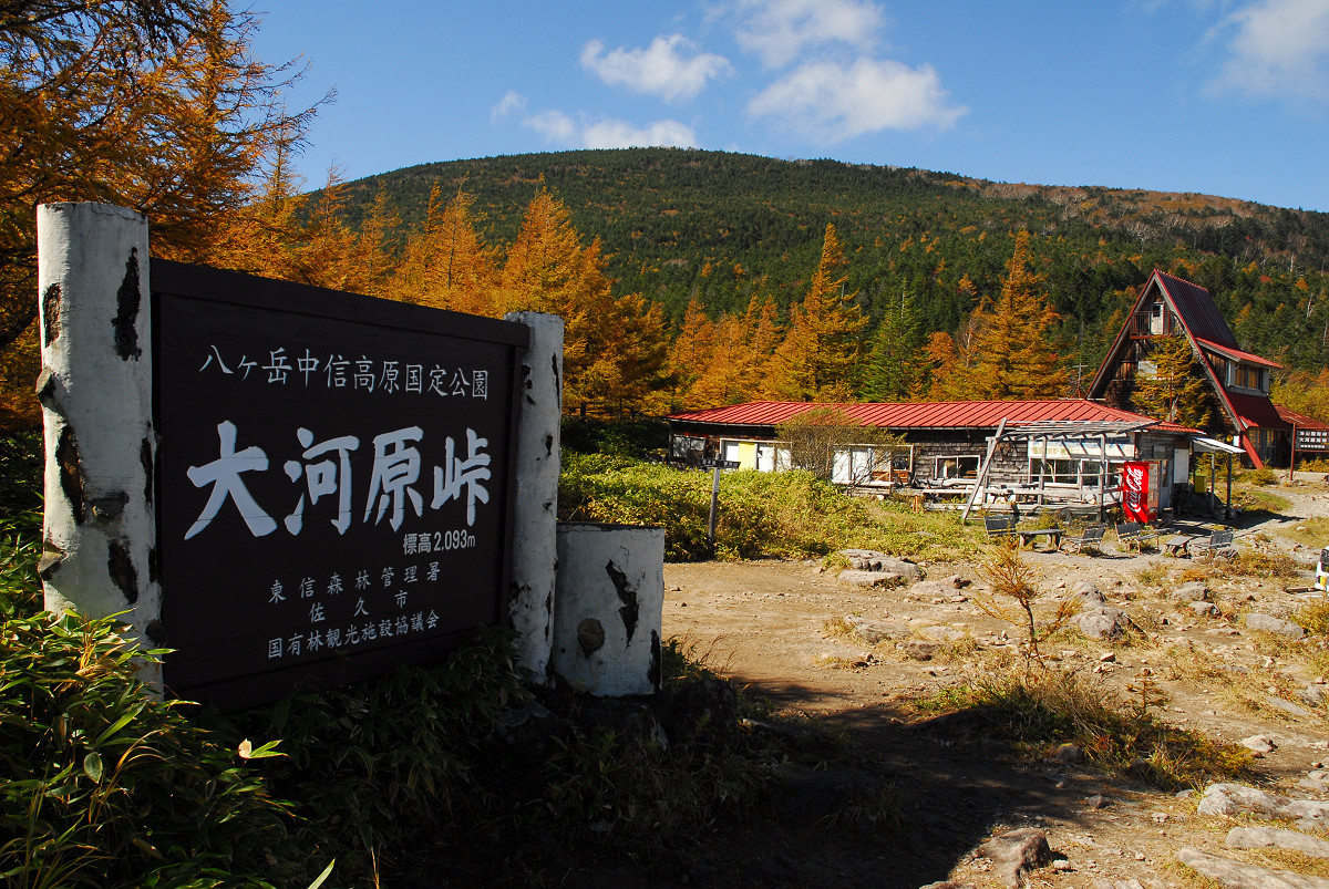 大河原峠(10:28)〜 蓼科荘(11:59)〜 蓼科山(13:02)〜 蓼科荘(14:14)〜 大河原峠(15:55)