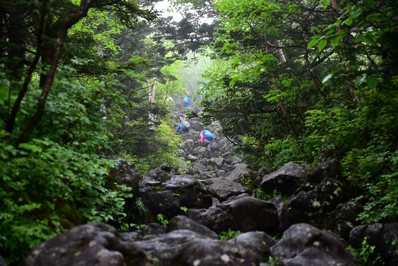霧雨の中を出発。頂上では青空も見えて少しだけ夏を感じました。