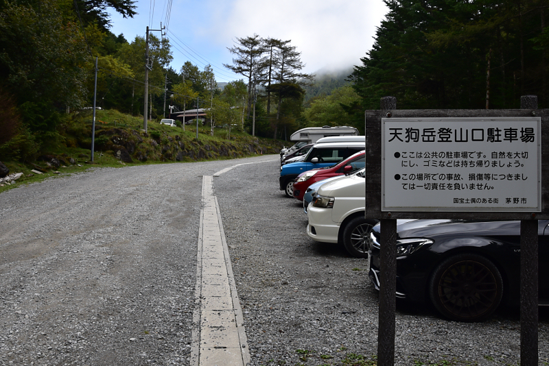 駐車場は満車で少し下った林道脇に停めました。