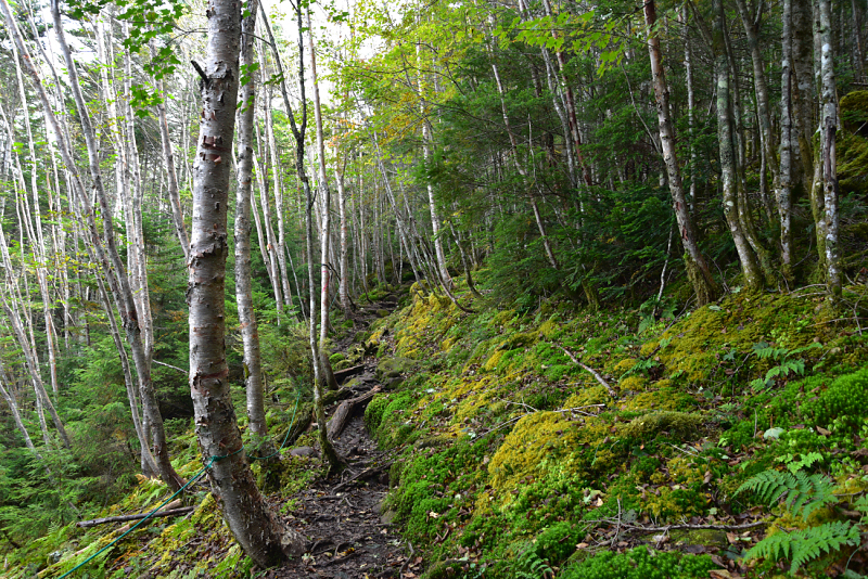 西尾根経由で登ります。苔の登山道は、歩きやすく目の保養にもなります。