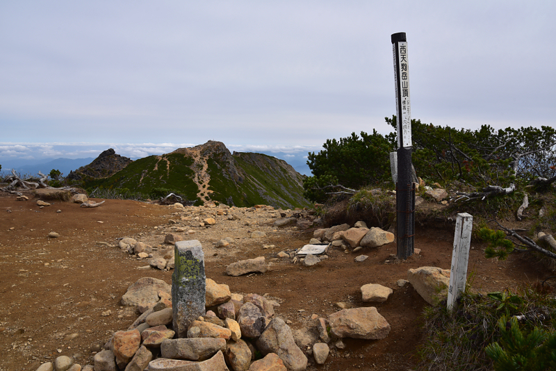 西天狗岳に到着。三角点はありますが動く状態のようです。