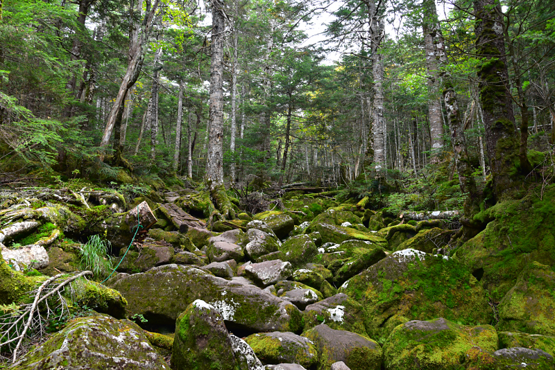 出発時間が遅かった為、唐沢鉱泉の日帰り入浴に間に合うように歩き続ける。黒百合ヒュッテ周辺のゴロゴロした登山道に腰をやられてしまい唐沢鉱泉が遠くに感じた。 |