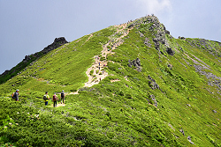 あそこが最終目的地です。周辺には大勢の登山客がおります。