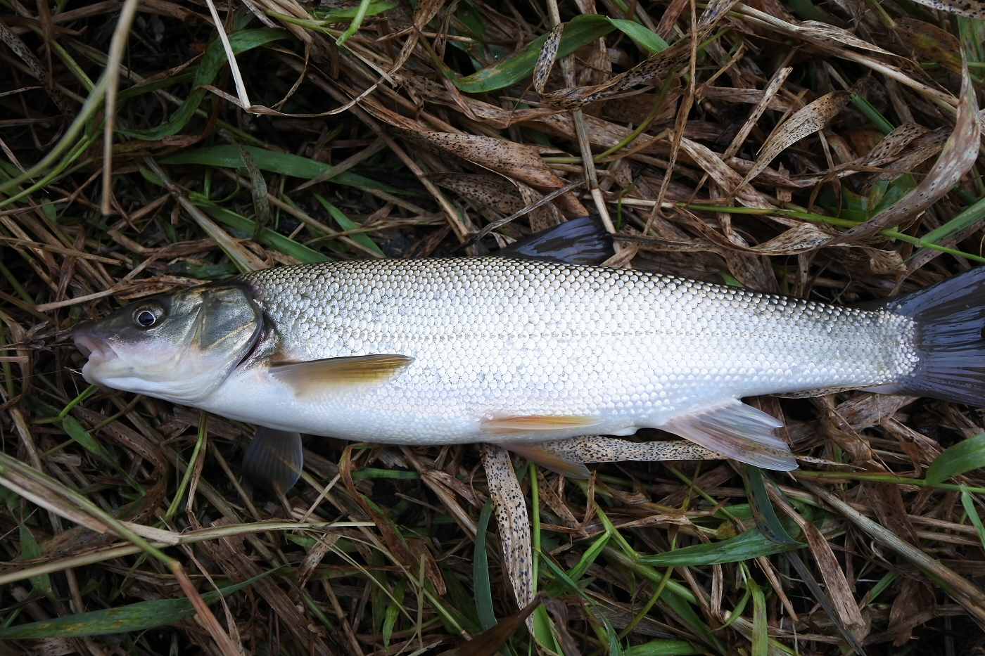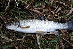 川底を流したら9寸ほどのウグイが釣れました。