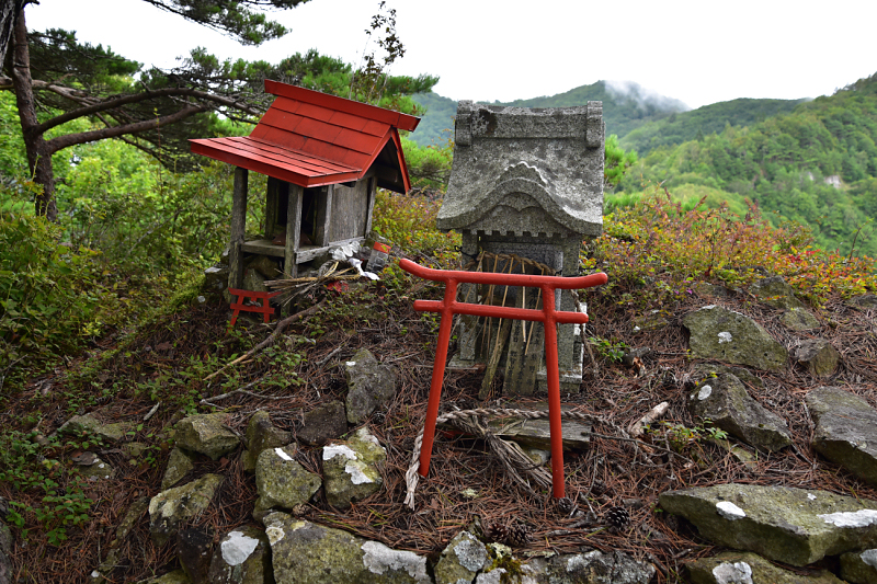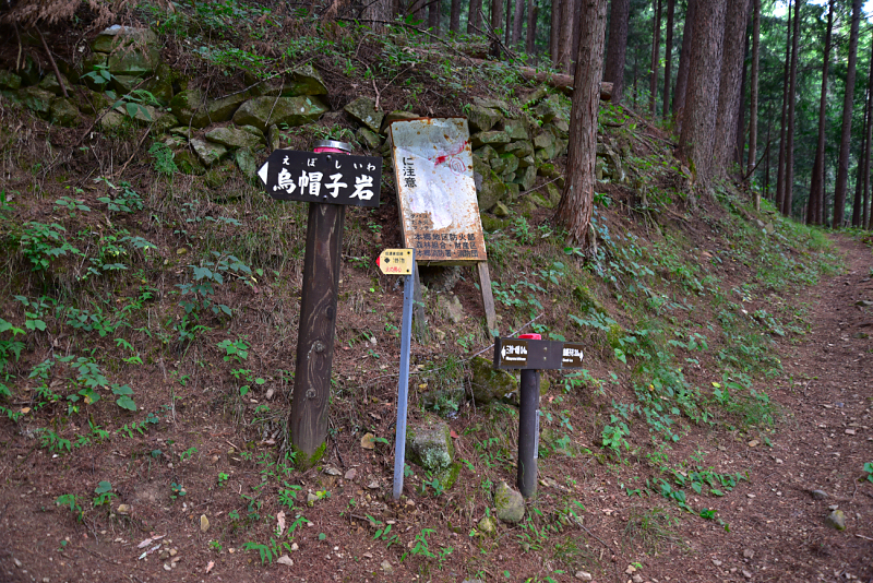 烏帽子岩権現に到着。山の神と女鳥羽川の水神様がまつられています。