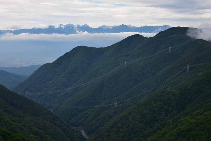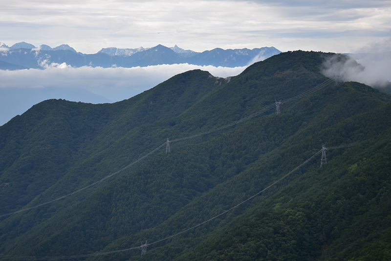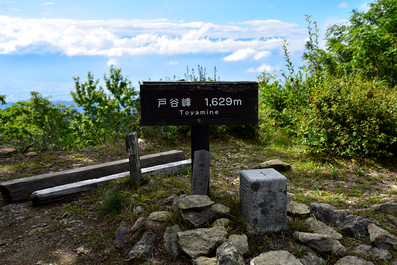戸谷峰に到着。歩いてきた道を振り返りました。正面の山は六人坊。