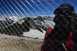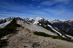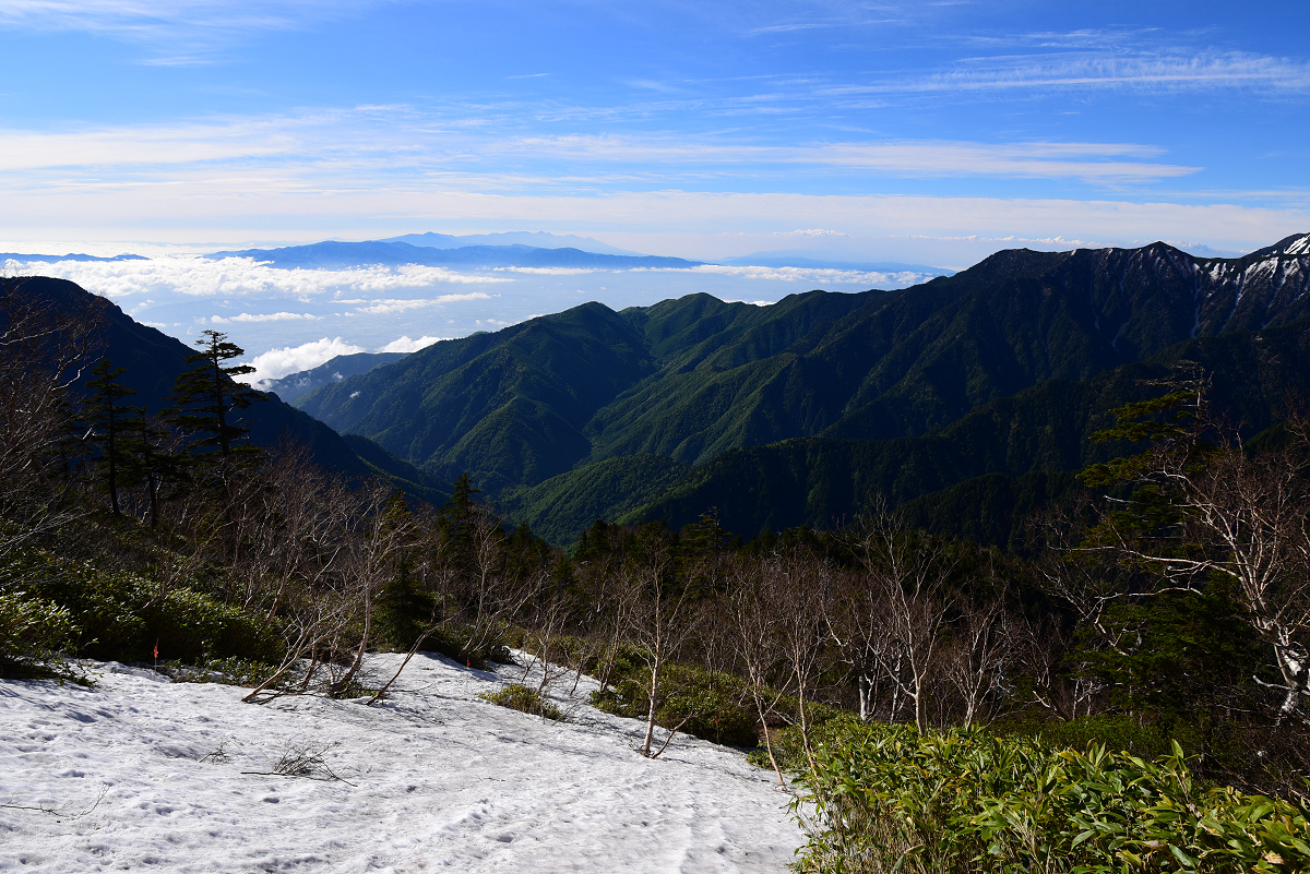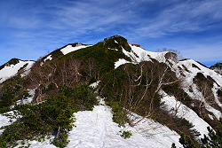 まだまだ雪が多いようです。登山道も不明瞭で下山に時間が掛かりそうなので、来た道を戻ります。