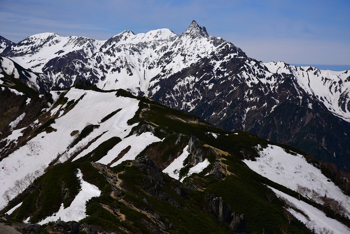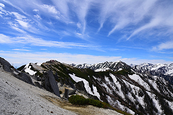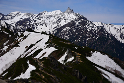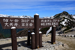 槍ヶ岳方面は、前日に雪が降ったようで真っ白になってました。