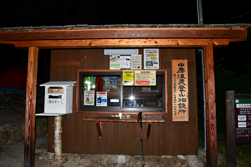 登山届を出して出発。この時間帯でもトイレ周辺には人影が見られます。