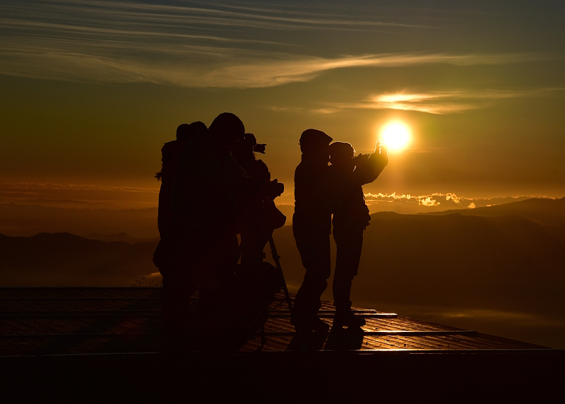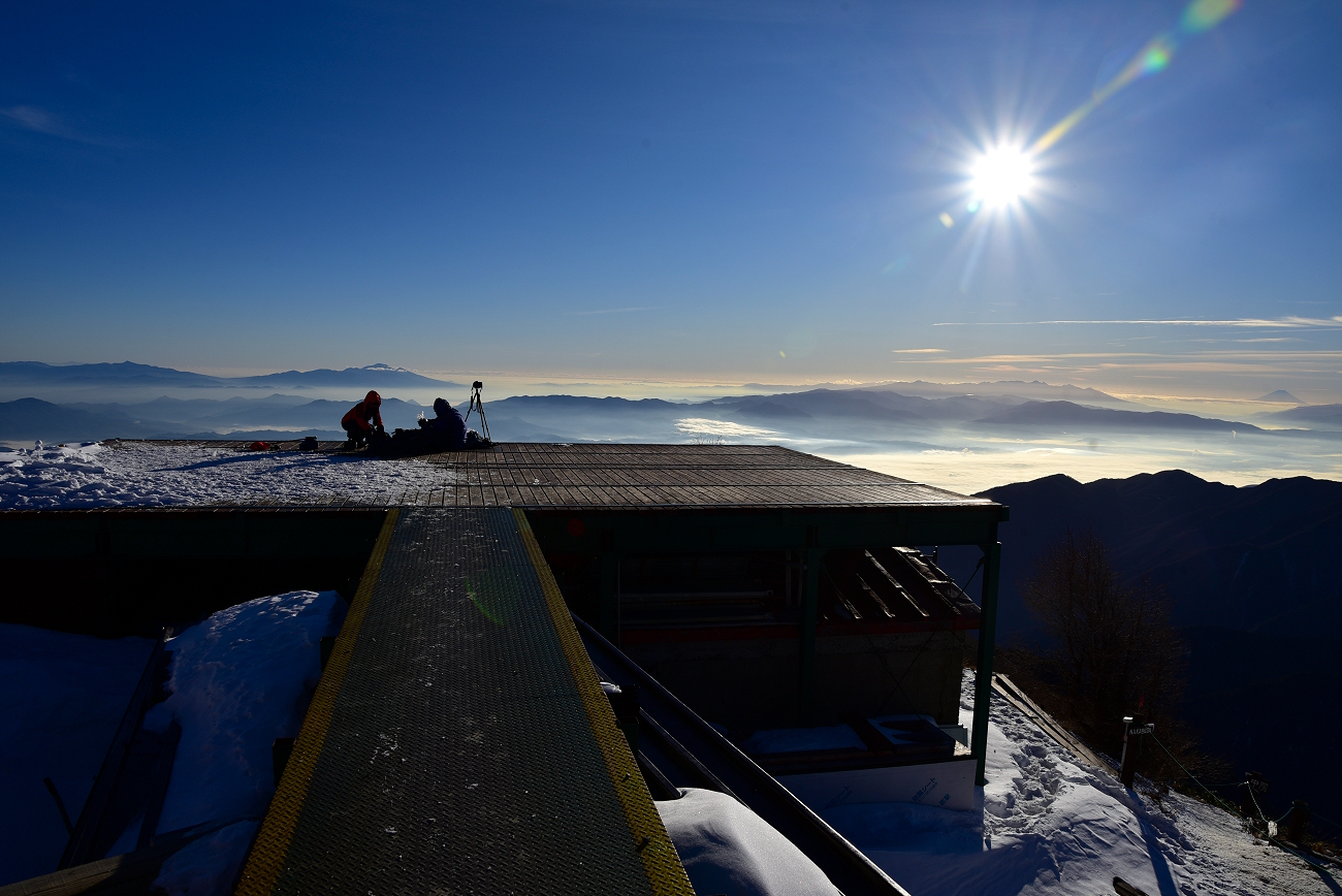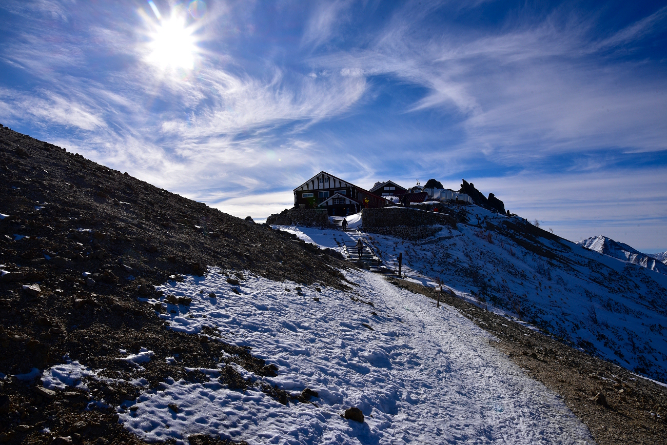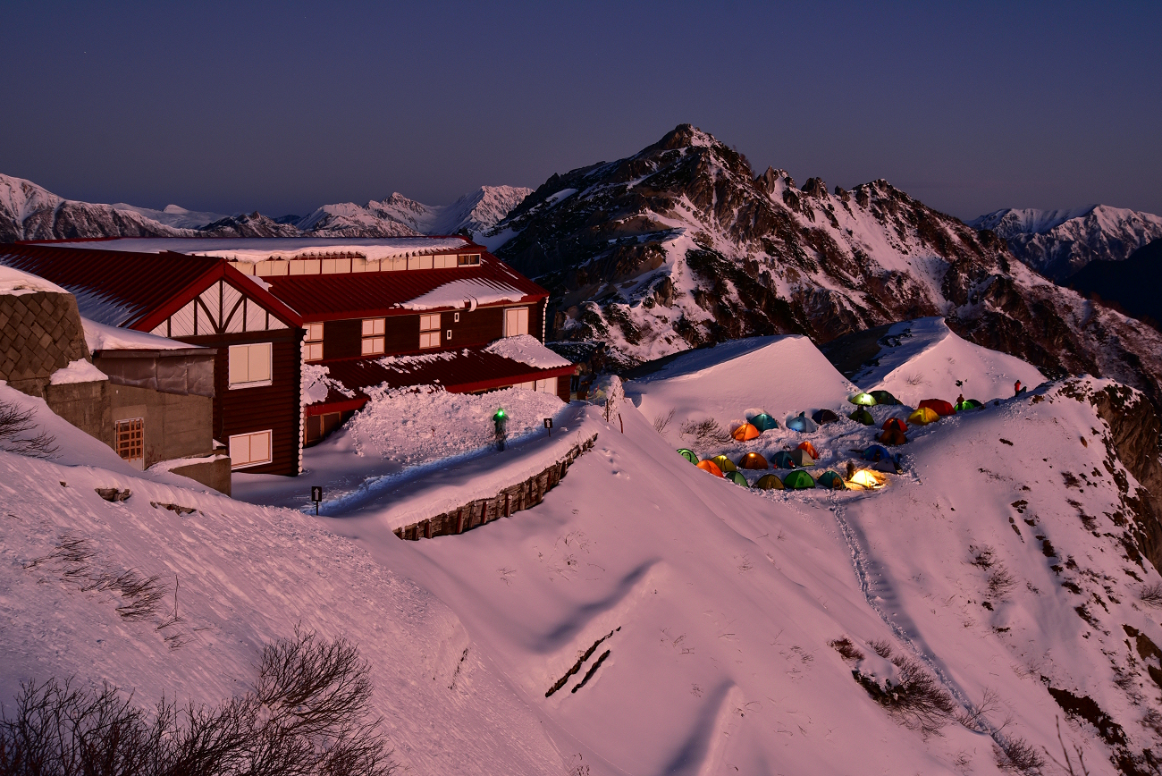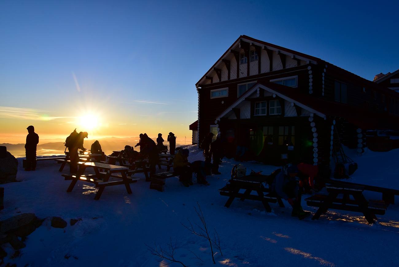連休の為、大勢の人達が山荘の前に集合。まるで夏山のような賑わいだった。