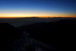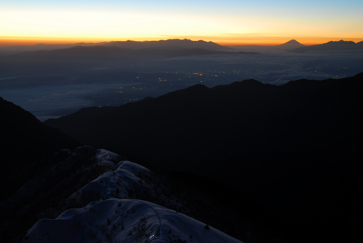 登ってくる人達のライトが見えます