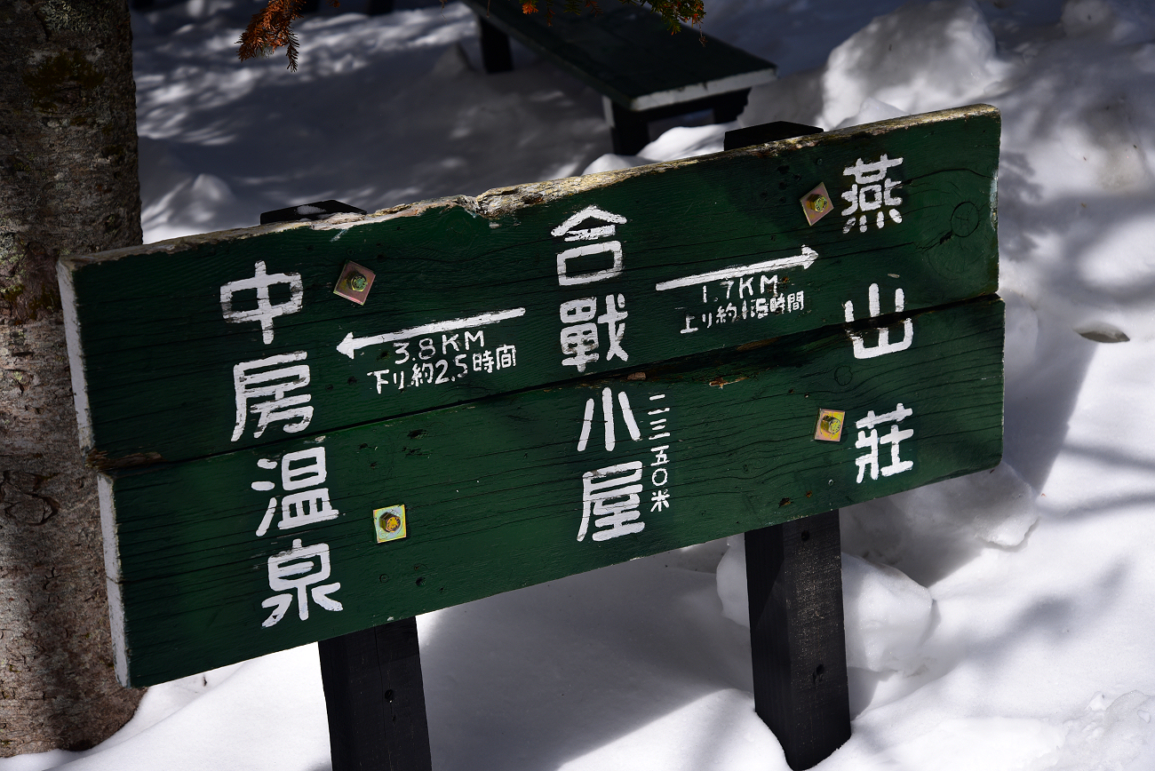 ~ 合戦小屋(8:14) ~ 燕山荘(9:32) ~ 燕岳(10:19) ~ 合戦小屋(12:04) ~ 富士見ベンチ(12:36) ~ 第3ベンチ(12:36)