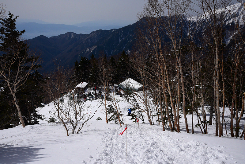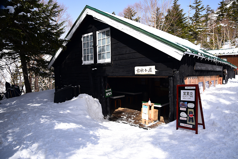 座る場所が無いほど混んでます。ここで12本アイゼンに履き替えました。