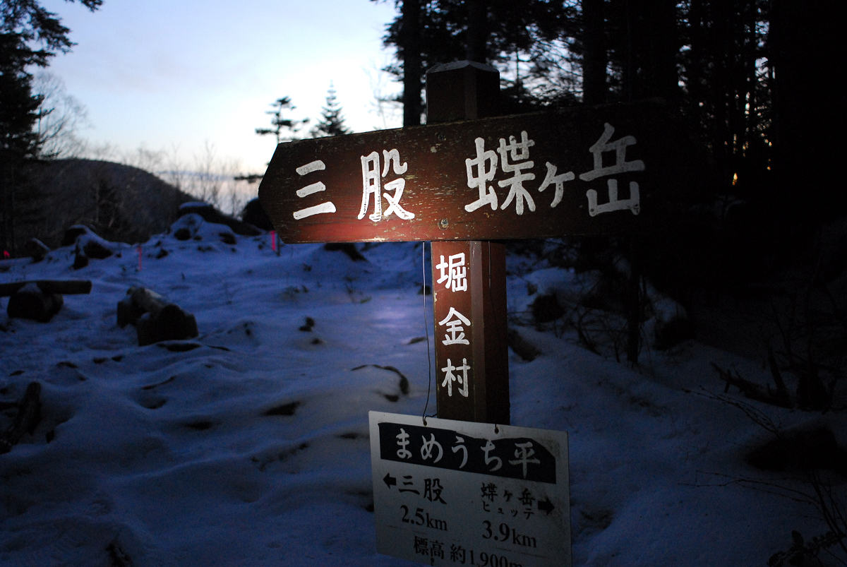 駐車場(4:48)〜 三股(4:59)〜 まめうち平(6:14)〜 蝶ヶ岳(8:28)〜 まめうち平(10:30)〜 三股(11:20)〜 三股(11:30)