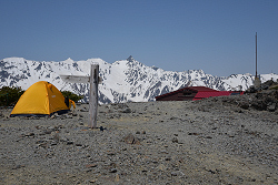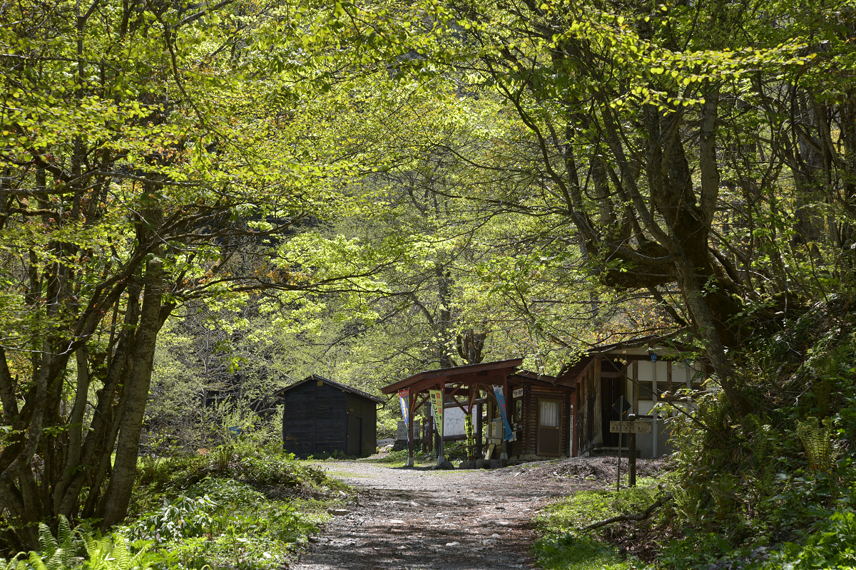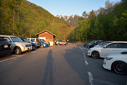 駐車場(5:00) 〜 三股登山指導所(5:14) 〜 まめうち平(6:30) 〜 蝶沢(7:09) 〜 蝶ヶ岳ヒュッテ(8:46-11:00) 〜 蝶沢(11:44) 〜 まめうち平(12:14) 〜 駐車場(13:22)