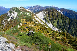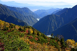 七倉駐車場(2:10) 〜 登山口(4:00) 〜 烏帽子小屋(7:56) 〜 烏帽子岳(10:16) 〜 烏帽子小屋(11:17) 〜 登山口(13:28) 〜 高瀬ダム(13:49) 〜 七倉駐車場(14:00)