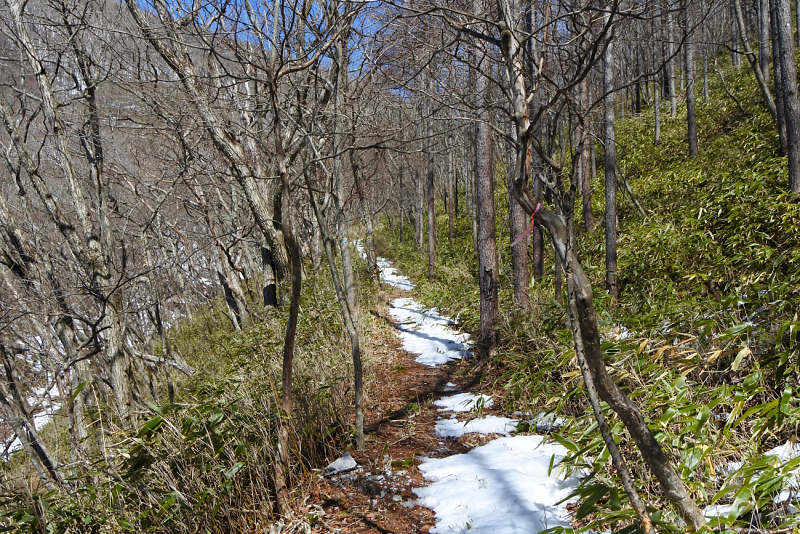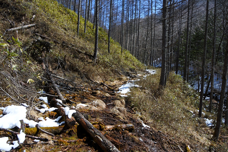古い作業道がありましたが雪も溶けてしまいスキーが使えません。