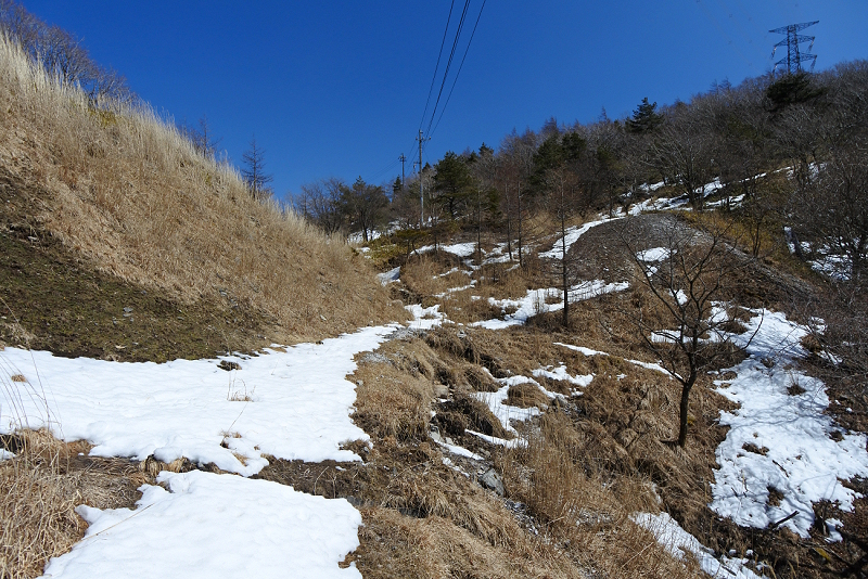 長和側にやって来ました。このまま進めないので和田山の斜面を登っていきます。