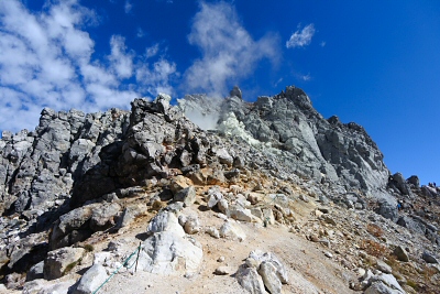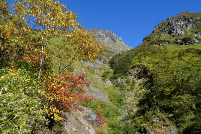 路上駐車(6:48) 〜 新中の湯登山口(7:00) 〜 北峰と南峰のコル(9:57) 〜 焼岳(10:11) 〜 北峰と南峰のコル(11:36) 〜 新中の湯登山口(13:34) 〜 路上駐車(13:43)