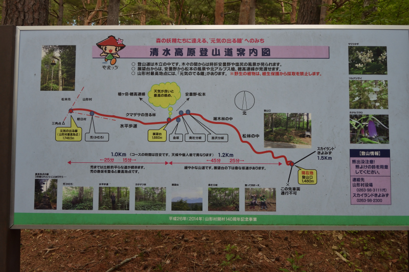 登山口(10:57) ~ 山形村最高地点(11:49) ~ 三角点(12:11) ~ 山形村最高地点(12:25) ~ 登山口(13:21)