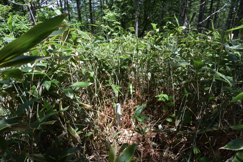 最高地点から三角点まで進むが強烈の藪の為に力尽きる。 |