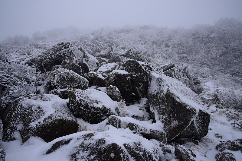 石の上に積もった雪が微妙に滑ります。